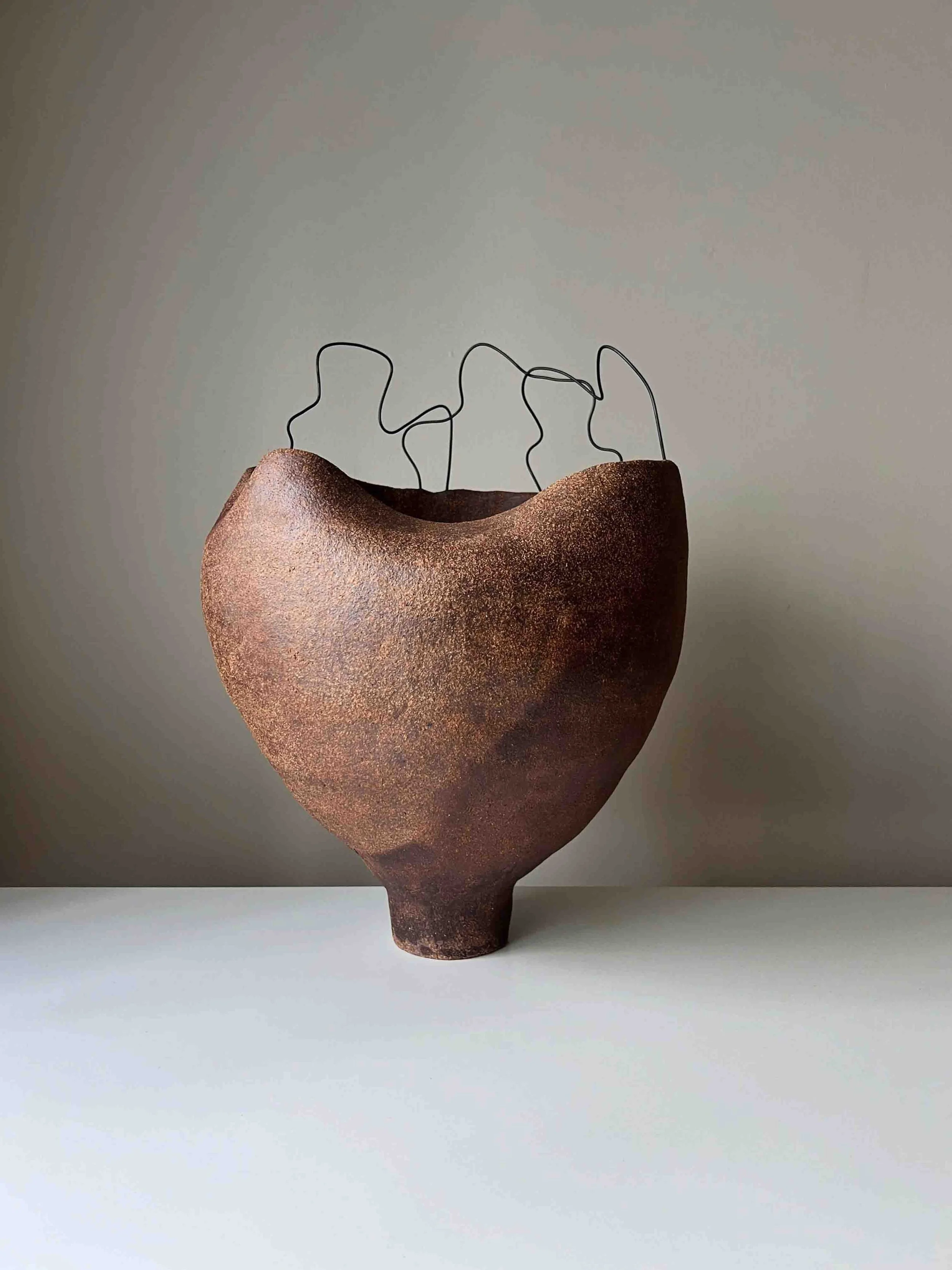 Introducing a new series of mixed-media vases, where stoneware clay meets wire in a thoughtful fusion of texture and form