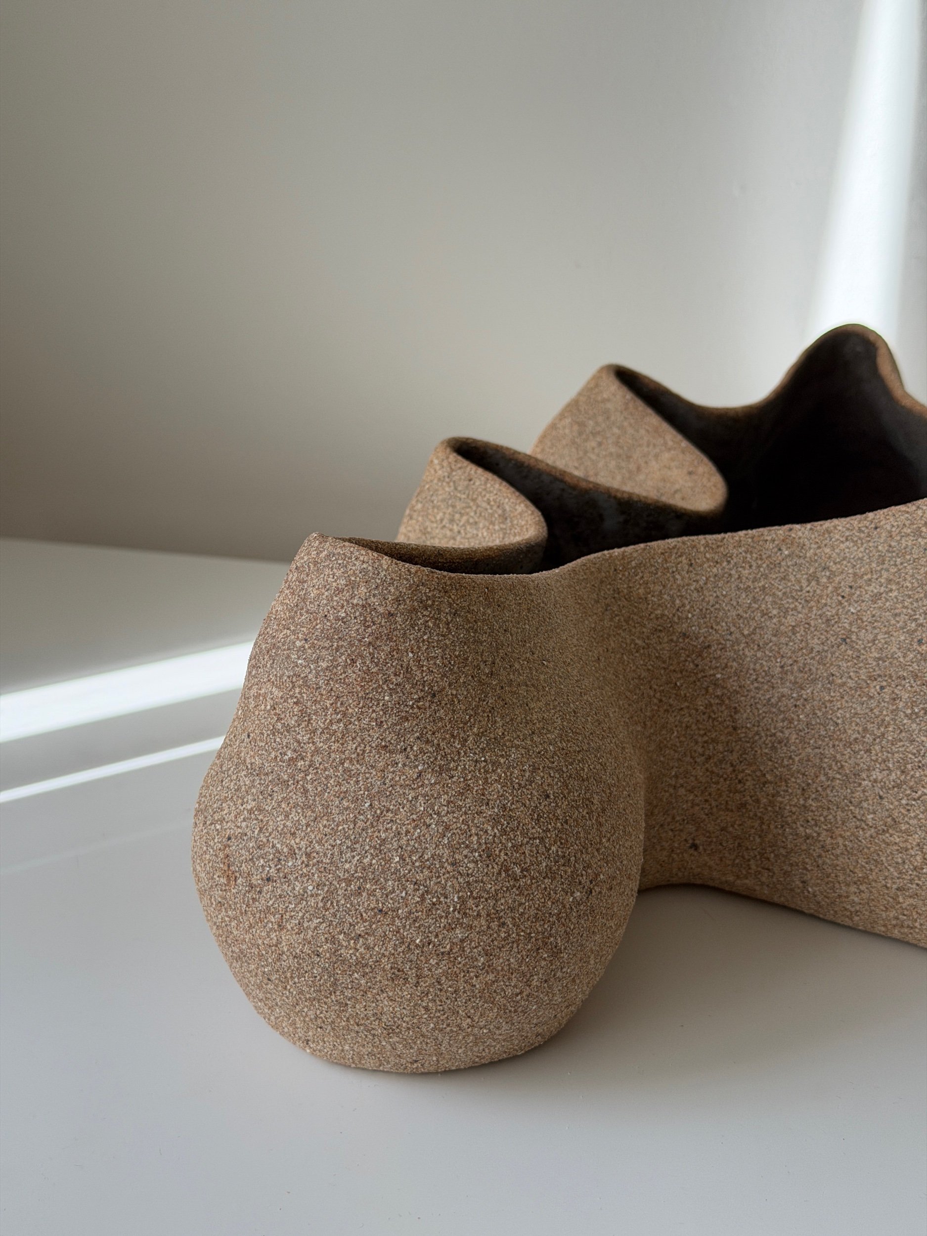 Made slowly by hand using traditional coil-building techniques. The surface has a naturally tactile, stone-like feel. Every curve is shaped intuitively, making this piece one-of-a-kind.
