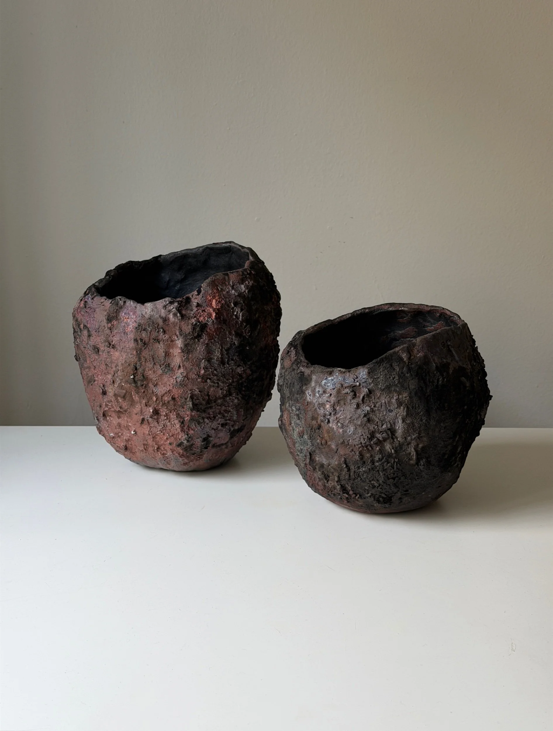 Each piece is made by hand in my Los Angeles studio. Due to the nature of the raku process, variations in color, surface, and form are expected—and are part of what makes each piece unique.