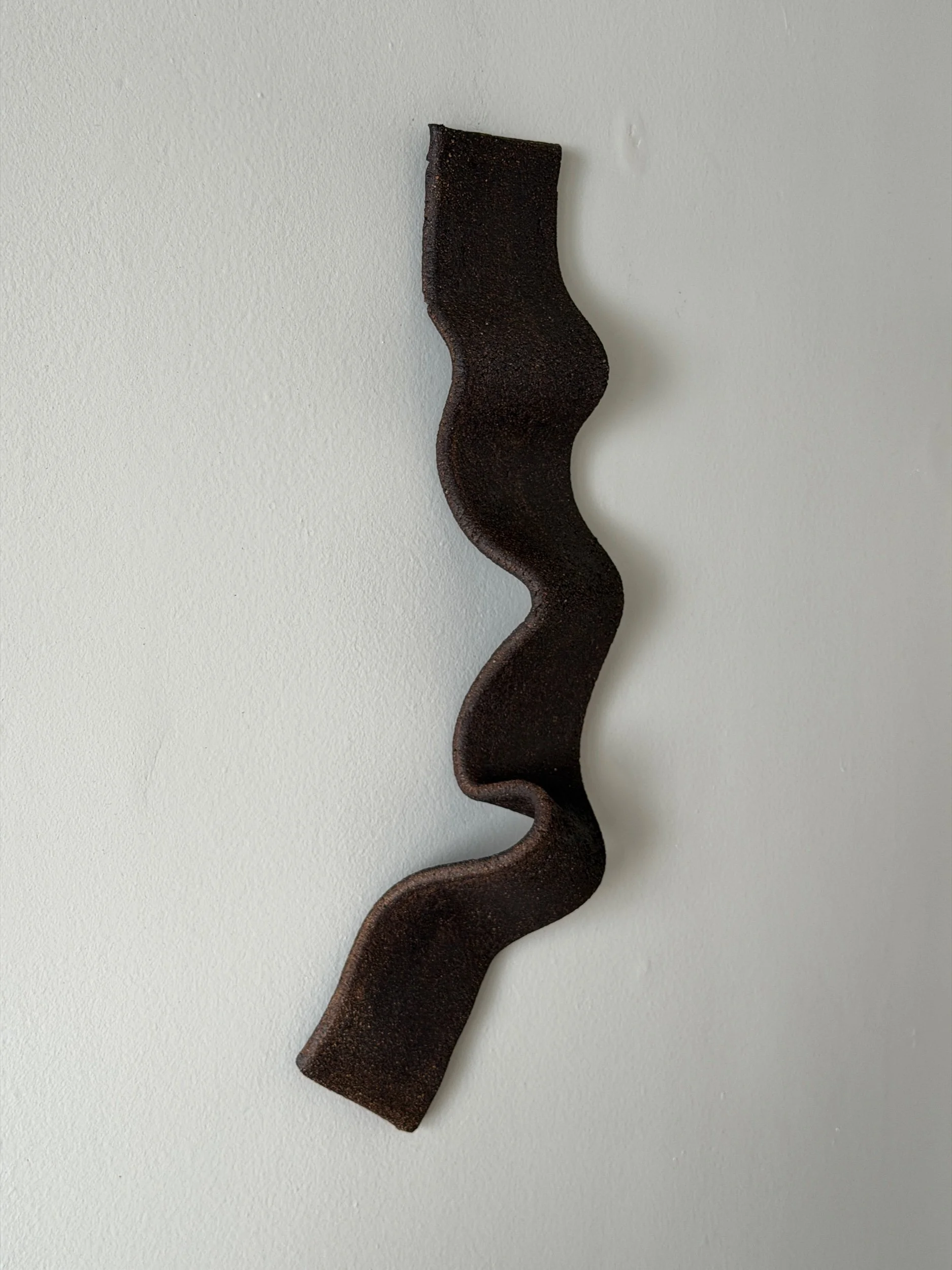 A hand-sculpted ceramic wall piece with an organic, flowing shape.